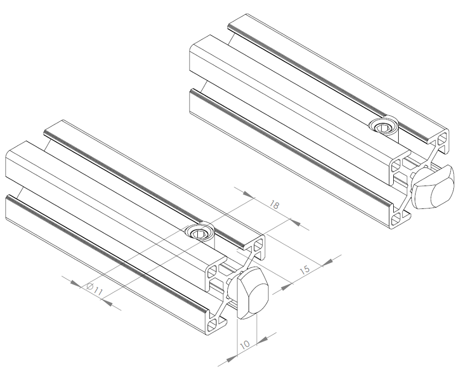 Łącznik szybkołączący 8/10 90° (poziomy) ESD służy wyłącznie do łączenia profili typu B z serii 8 z profilami typu B z serii 10: