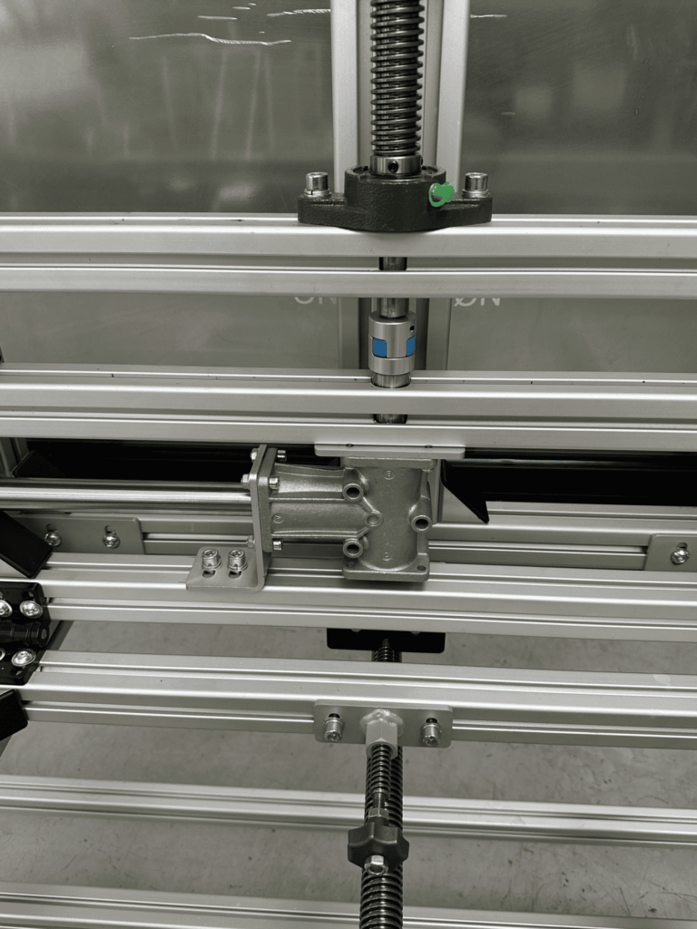 Jednocześnie uprościliśmy obsługę: w ręczne pokrętła wspawaliśmy nakrętki, dzięki czemu szybę można teraz ustawiać za pomocą wkrętarki – bez siłowania się.